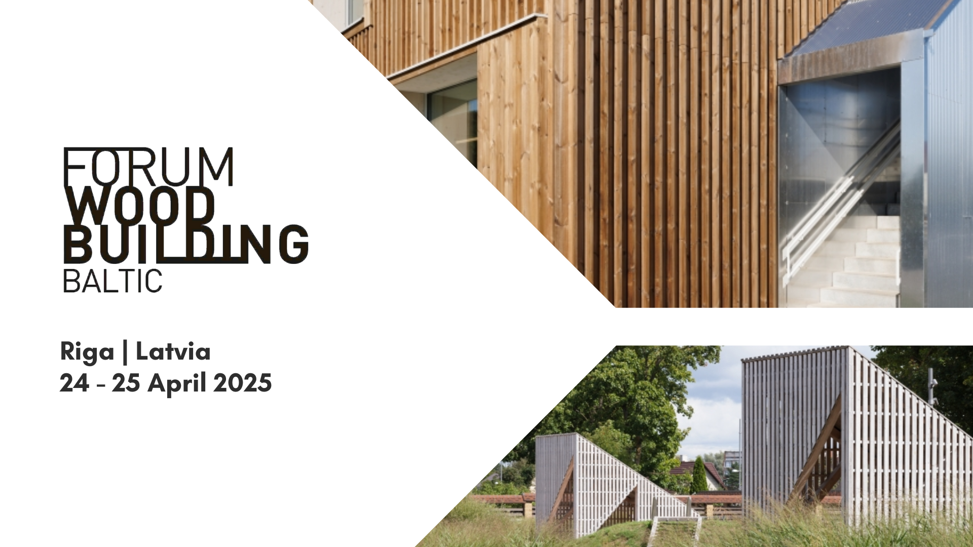 The Forum Wood Building Baltic 2025 is organized by Institute of Architects, Institute of Civil Engineering and Science and Innovation Centre of the Riga Technical University together with FORUM HOLZBAU in liaison with the Latvian Wood Construction Cluster and the Forest and Wood Products Research and Development Institute