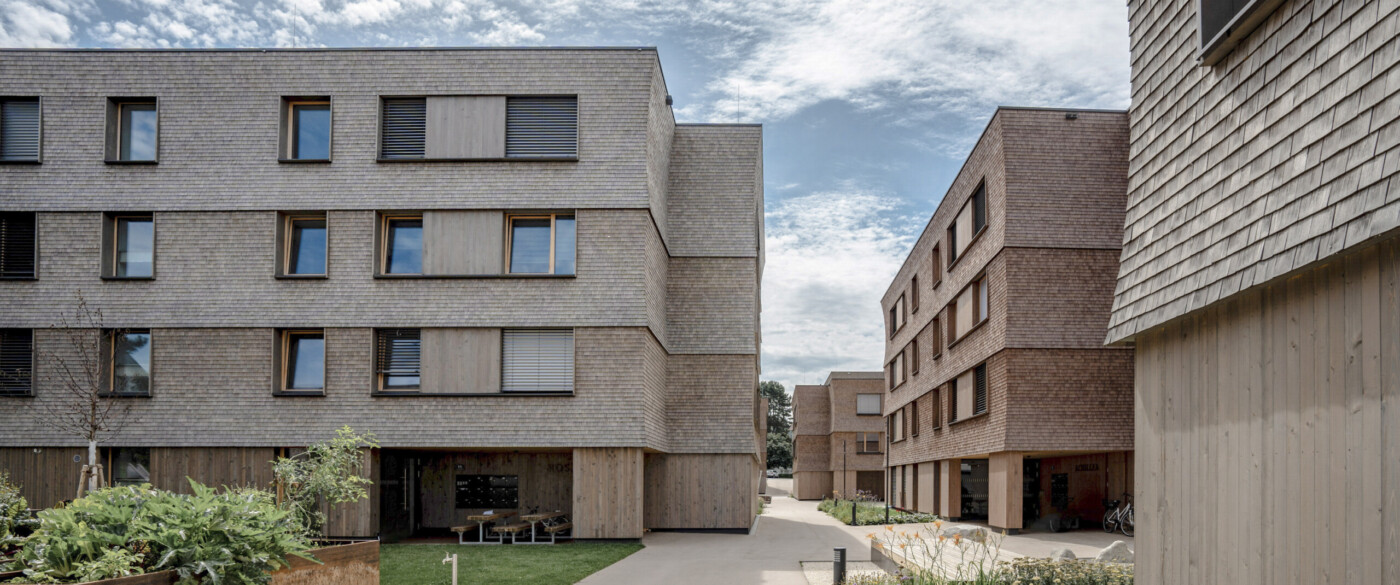 Numerous halls for carpentries and other businesses attest to his purposeful design concepts for wooden structures which are architecturally elaborated also effective for community halls. Beside numerous single-family houses the project list is completed by cautious renewals of old building substances in sensitive village contexts which prove his fine sense in handling with existing architectural culture and landscape. Housing constructions developed to a main task especially in connection with wood and questions of energy as well as school buildings and public buildings.